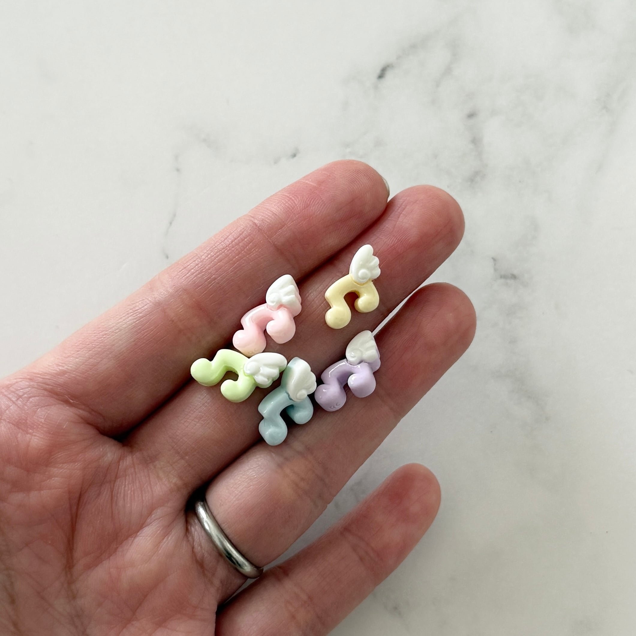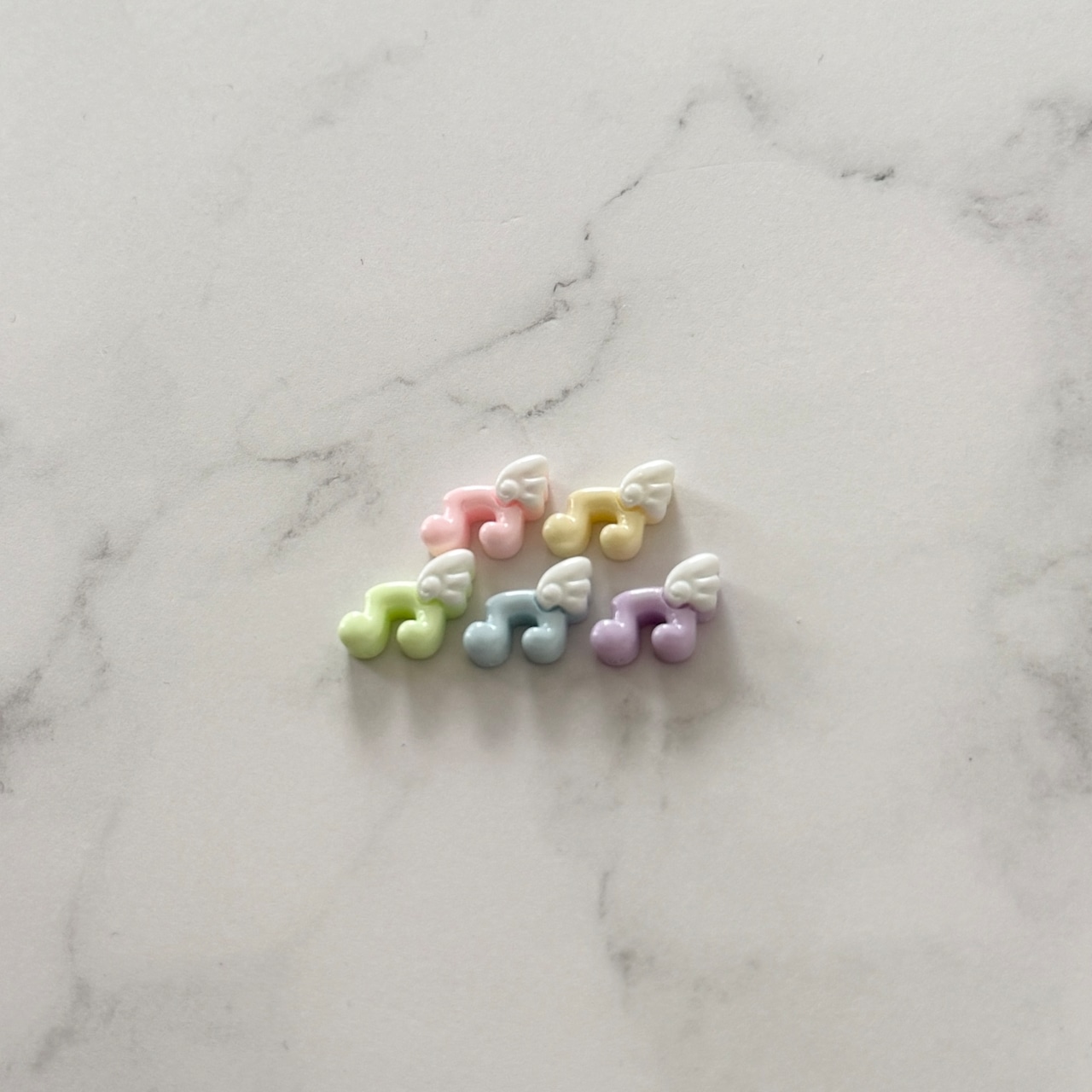 【15個】羽付き音符 スモールサイズ デコパーツ【5色】