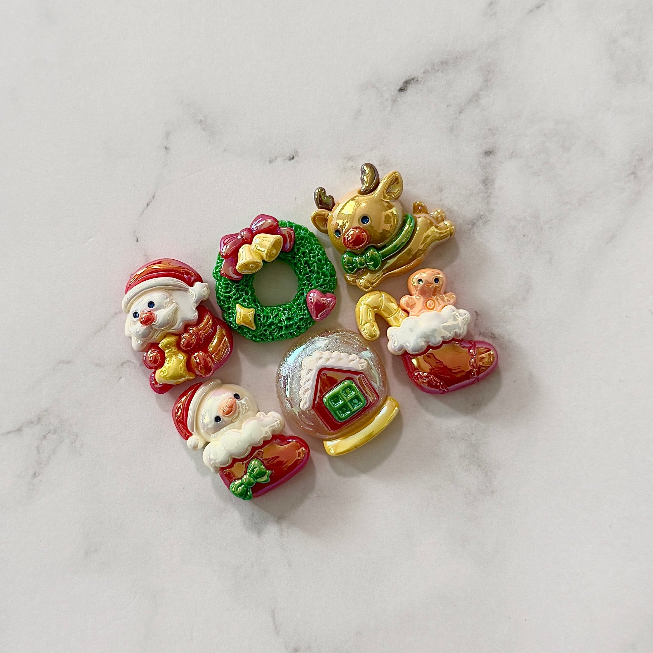 【6個】ツヤツヤ光沢クリスマス デコパーツ【6種】