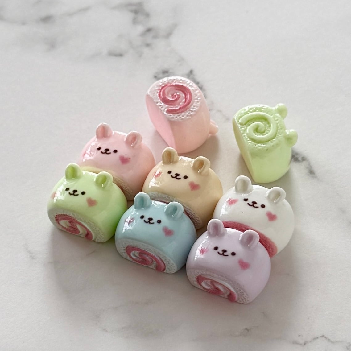【6個】うさ耳ロールケーキ デコパーツ【6色】